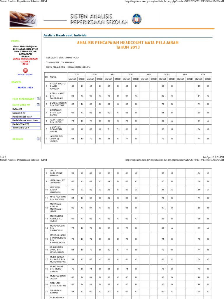 Saps Ibubapa 2020 Sistem Analisis Peperiksaan Sekolah Gurubesar My